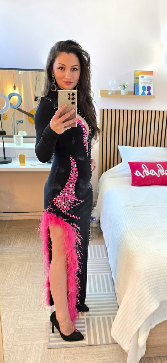 Pantalon noir taille haute décoré de strass ref: 202513030004